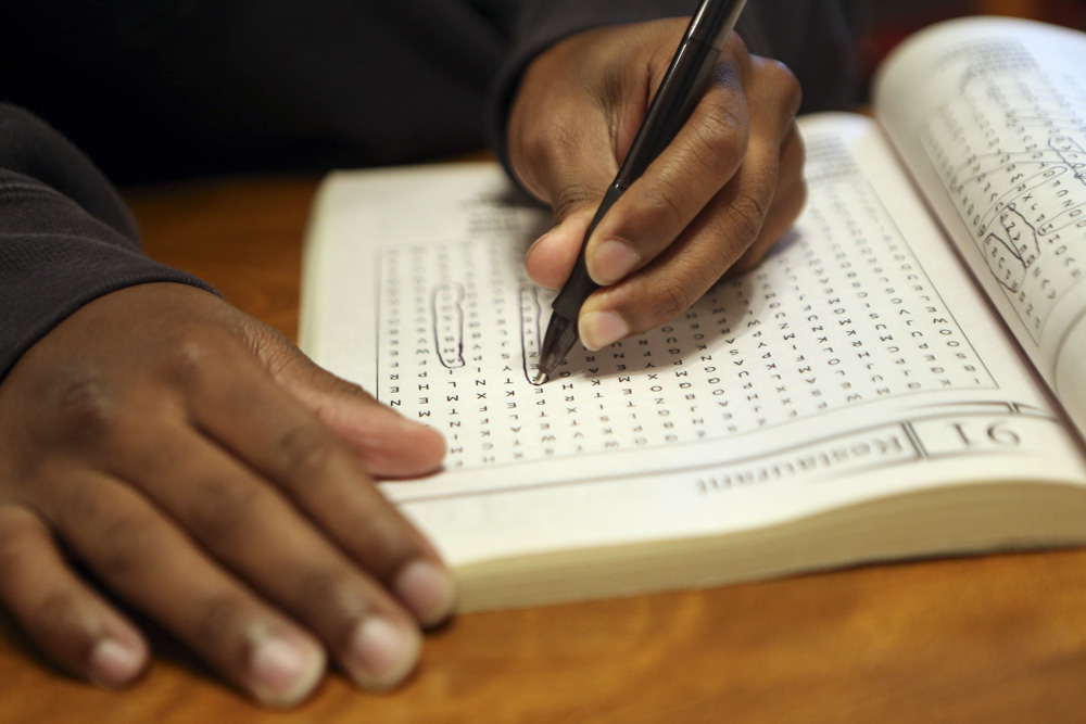 Multiple 3rd Place: Heather Rousseau/The Roanoke Times Published December 8, 2015 at 1000 × 667 in Multiple 3rd Place: Heather Rousseau/The Roanoke Times Khamani Jones does a word-find puzzle at the kitchen table of his home with the Jordans on Saturday, May 2, 2015. Leslie Jordan said he is a quick learner and great helper around the house.