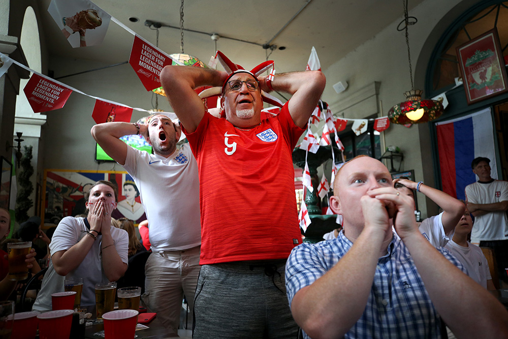 1st 03-2018-sl-sports-02 Published January 4, 2019 at 1000 × 667 in 1st 03-2018-sl-sports-02 1st PLACE SPORTS: SHELBY LUM, RICHMOND TIMES-DISPATCH–Fans react to the England vs. Croatia game at Penny Lane Pub on Wednesday July 11, 2018. Croatia won the game 2-1.