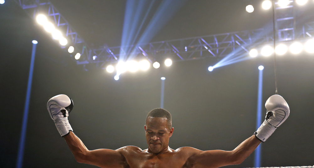 MULTIPLE – 2nd Place (Jonathon Gruenke/Daily Press) Published May 8, 2015 at 1000 × 536 in VNPA 1st Q. Clip Contest Winners Raymond Daniels celebrates after defeating Jonatan Oliveira during Friday’s tournament presented by Glory Sports International at the Hampton Coliseum. (Jonathon Gruenke/Daily Press)