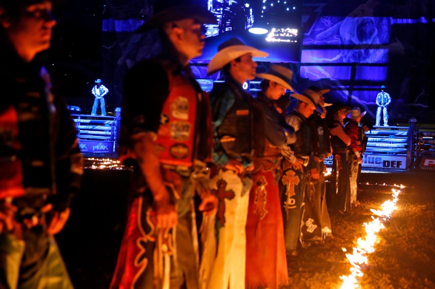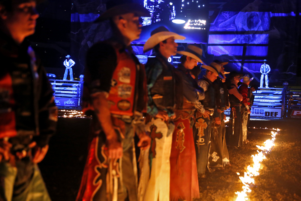 MULTIPLE – 3rd Place (Jonathon Gruenke/Daily Press) Published May 8, 2015 at 1000 × 667 in VNPA 1st Q. Clip Contest Winners Bull riders are introduced to the crowd before competing in the Pro Bull Riders Blue DEF Velocity Tour at the Hampton Coliseum Saturday evening. (Jonathon Gruenke/Daily Press)