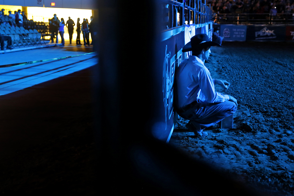 MULTIPLE – 3rd Place (Jonathon Gruenke/Daily Press) Published May 8, 2015 at 1000 × 667 in VNPA 1st Q. Clip Contest Winners A rodeo hand waits in the ring as guest file into the Hampton Coliseum before the start of the Pro Bull Riders Blue DEF Velocity Tour Saturday evening. (Jonathon Gruenke/Daily Press)