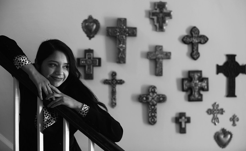 Angelica Garcia poses for a portrait on the stairwell of her home, the St. James Episcopal Church Rectory in Accomac, Va. on Friday, Feb. 27, 2015. Garcia, a singer and song writer, wrote her songs in the church’s nearby parish house. Garcia recently signed a recording deal with Warner Bros. and will be opening for recording artist Jeff Black on Friday, March 6 at St. James Church. The concert will raise money for the church’s food pantry. (Jay Diem/ Eastern Shore News)