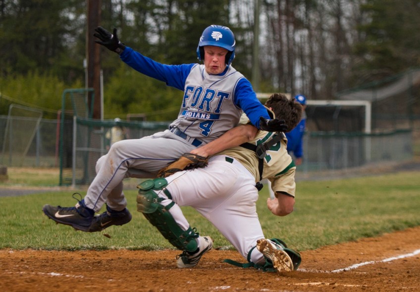 SPORTS – 2nd Place (Griffin Moores/The News Leader) Published May 8, 2015 at 1000 × 698 in VNPA 1st Q. Clip Contest Winners Fort Defiance’s Bryce Miller collides with Wilson Memorial’s catcher Ben Corbin before scoring the first run of their baseball game on Thursday, March 19, 2015. (Griffin Moores/The News Leader)