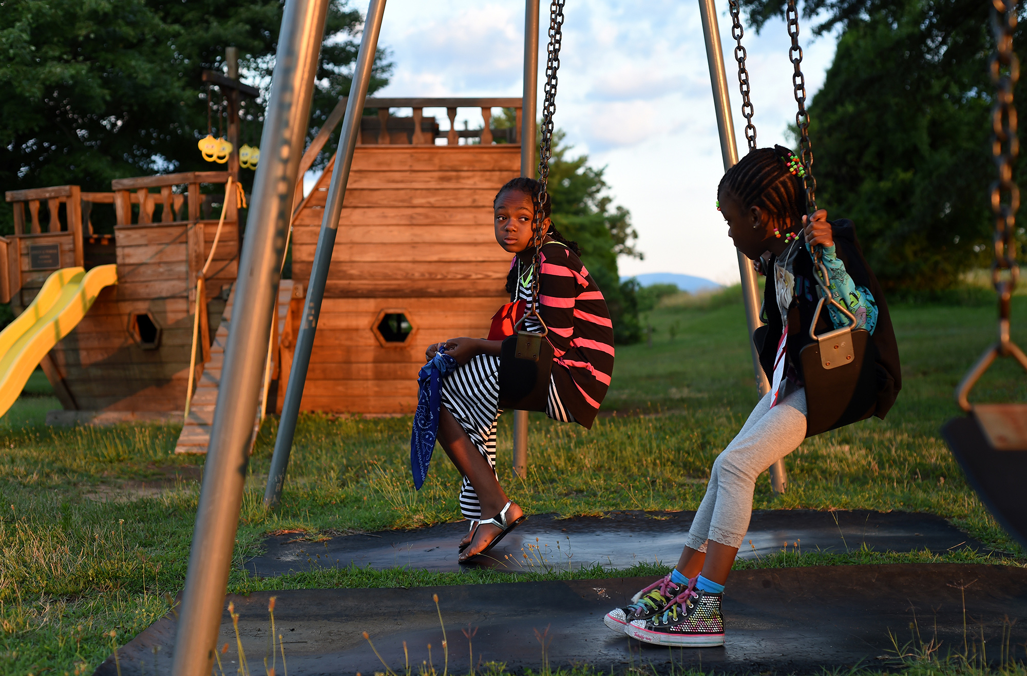 Published June 1, 2015 at 2000 × 1317 in THE 2014 VNPA PHOTO CONTEST WINNERS GALLERY: Feature Picture Story Sahara and Sapalo Puta wait for the bus to arrive to take them back to New York City at Northminister Presbyterian Church in Madison Heights, Va. on the last day of their visit in Virginia.