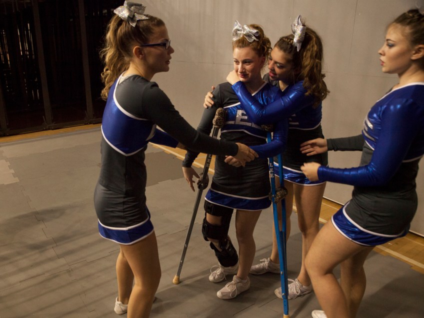 Cheer Published June 1, 2015 at 2000 × 1500 in THE 2014 VNPA PHOTO CONTEST WINNERS GALLERY: News Picture Story Robert E. Lee High School’s Gabby Sansom, who tore her ACL and meniscus in a previous competition, is comforted by her teammates before they started their state finals routine without her in Richmond on Nov. 8, 2014.