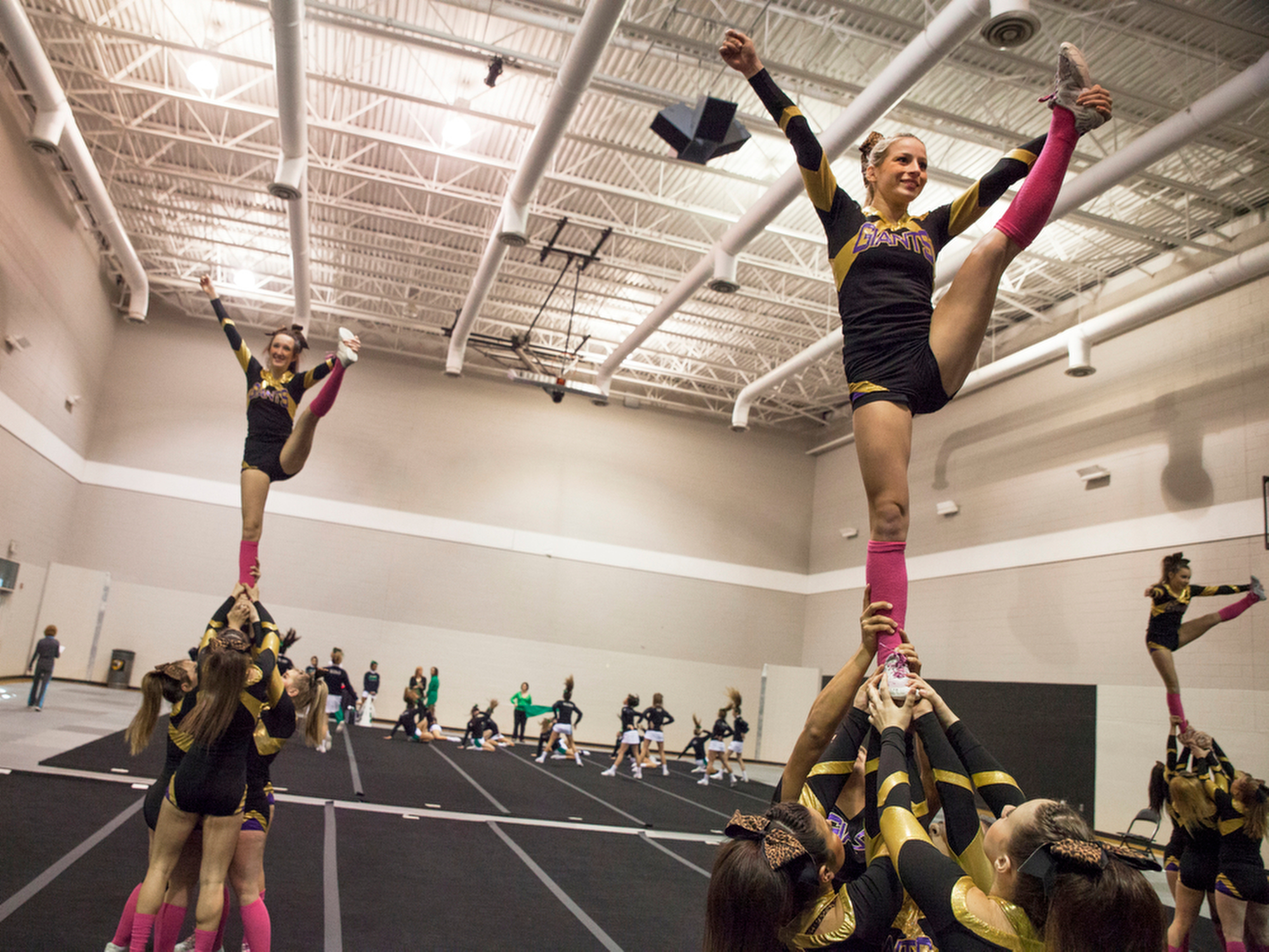 Cheer Published June 1, 2015 at 2000 × 1500 in THE 2014 VNPA PHOTO CONTEST WINNERS GALLERY: News Picture Story Waynesboro High School cheerleaders warm up before the start of their Group 3A cheerleading state championship performance in Richmond on Nov. 8, 2014.