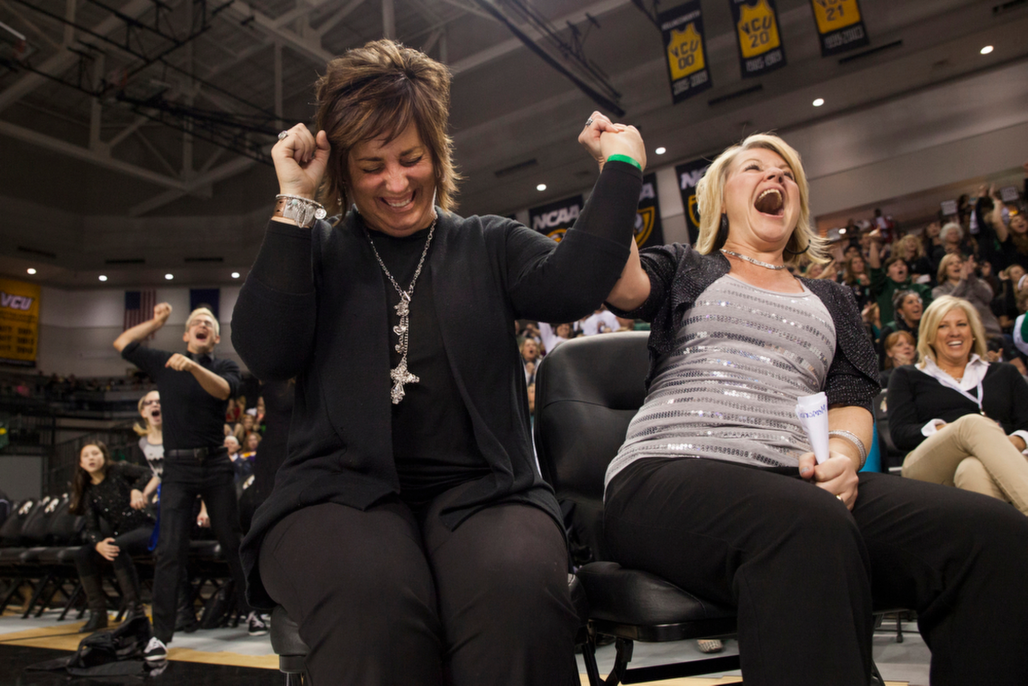 Cheer Published June 1, 2015 at 2000 × 1336 in THE 2014 VNPA PHOTO CONTEST WINNERS GALLERY: News Picture Story Wilson Memorial cheerleading coaches Renae Bailey, left, and Shannon Capriotti, right, celebrate the final moments of their team’s Group 2A cheerleading state championship winning performance in Richmond on Nov. 8, 2014.
