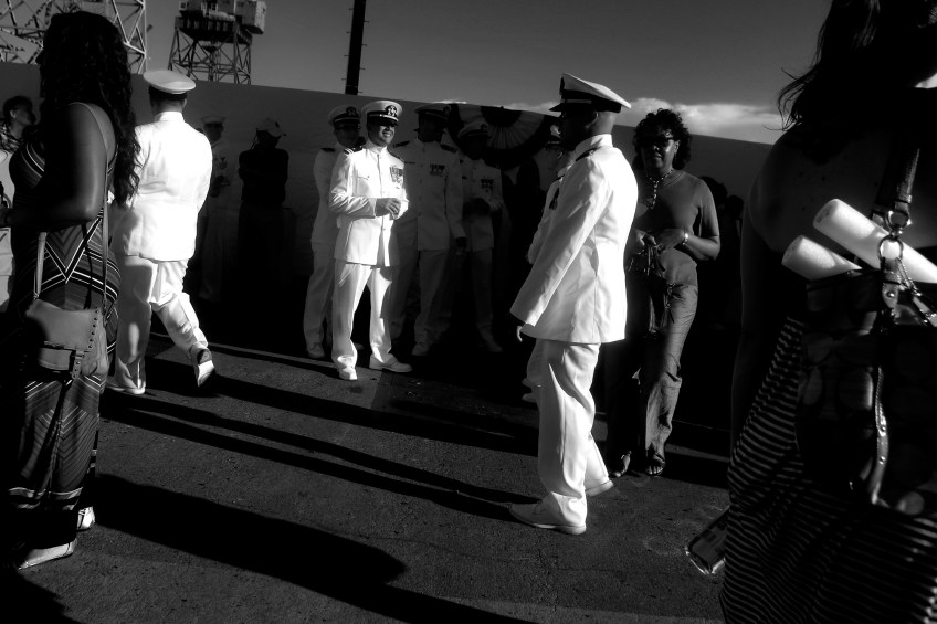 Christening Published June 1, 2015 at 2000 × 1333 in THE 2014 VNPA PHOTO CONTEST WINNERS GALLERY: News Picture Story Navy personnel and guests tour around the submarine John Warner SSN 785 before the christening Saturday evening at Newport News Shipbuilding.