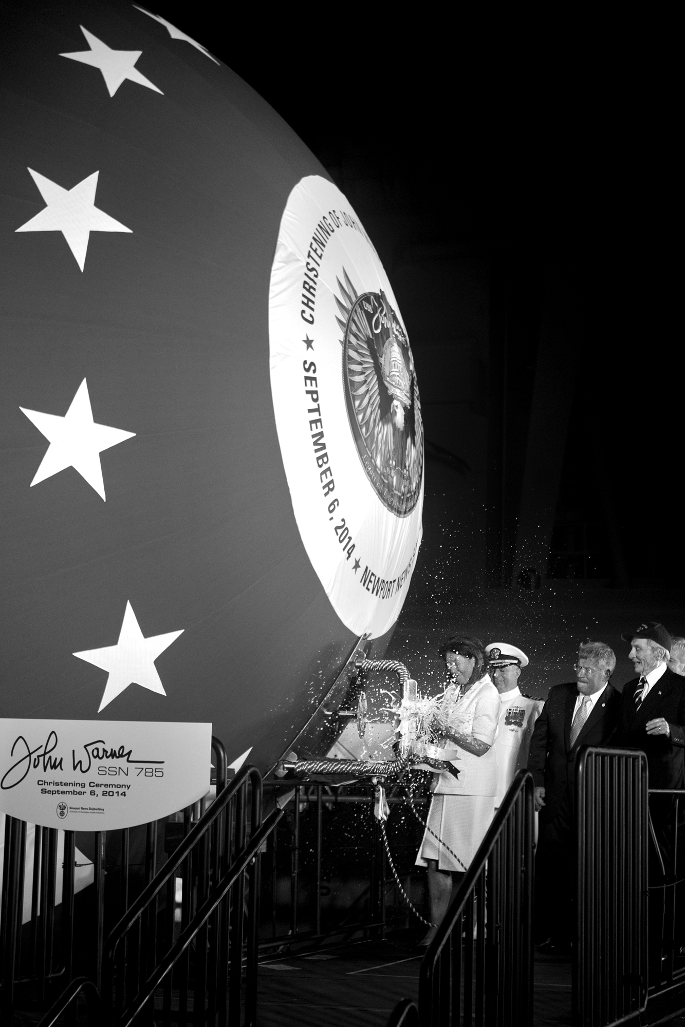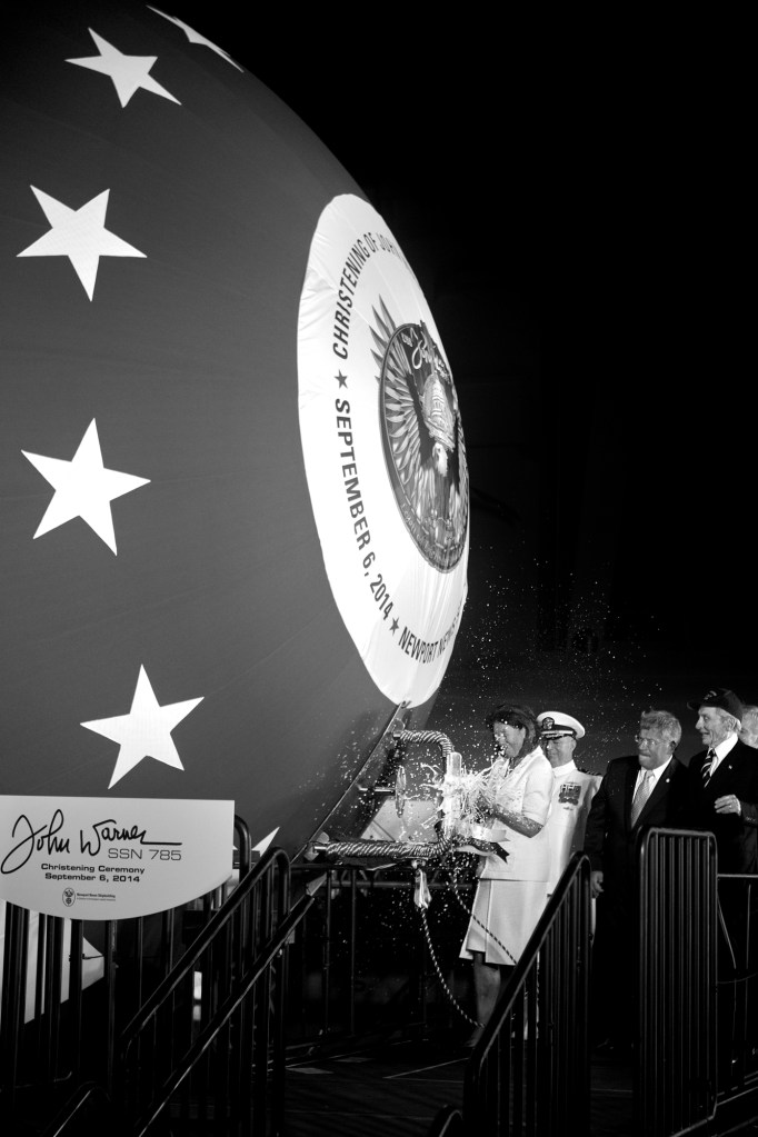 Christening Published June 1, 2015 at 1333 × 2000 in THE 2014 VNPA PHOTO CONTEST WINNERS GALLERY: News Picture Story Jeanne Warner christens the submarine John Warner SSN 785 Saturday evening at Newport News Shipbuilding.