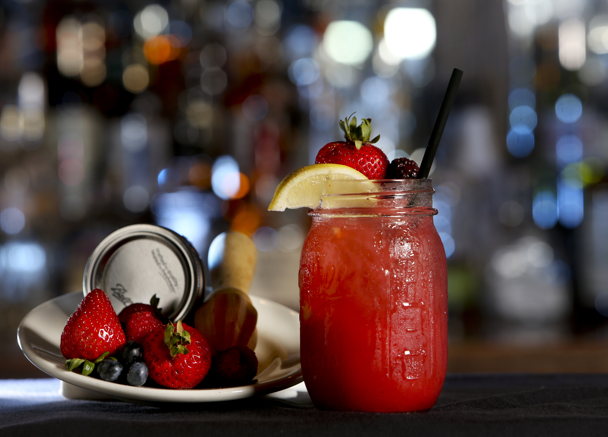 –Illustration 2nd Place: Stephanie Klein Davis/Roanoke Times–Table 50’s mixed fruit moonshine cocktail made with Virginia Lightning and local fruit from Tim Belcher at Rolling Meadows Farms in Snow Creek (Franklin County), is mixed and served in a mason jar.