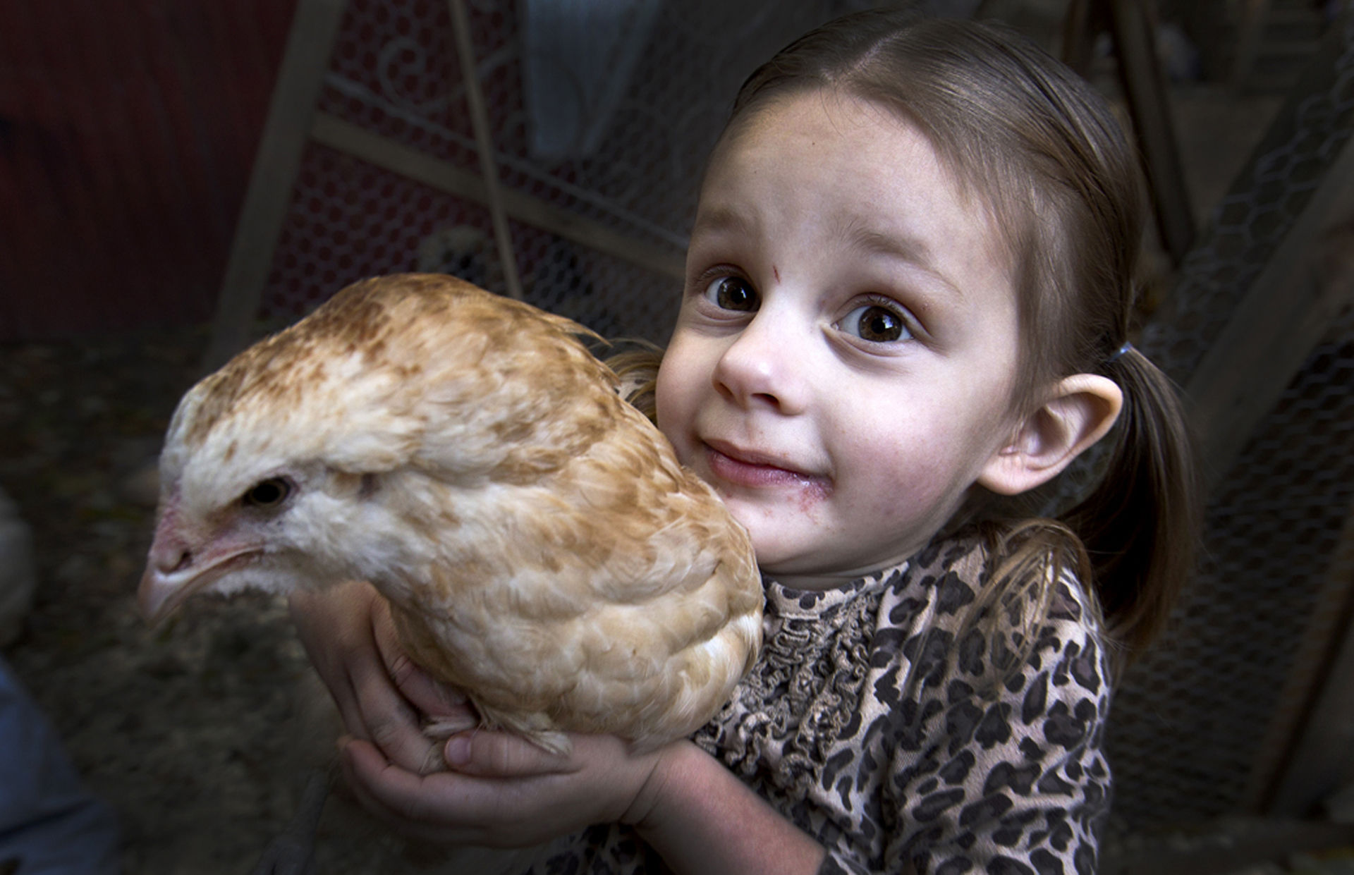 Lifestyle 2nd Place: Joe Fudge/Daily Press Published June 1, 2015 at 1920 × 1241 in The 2014 VNPA Photo Contest Winners Gallery: Singles –Lifestyle 2nd Place: Joe Fudge/Daily Press–The city is making the this family get rid of their backyard chickens they have had since the end of the summer. Lauren Rash 3 picks up her chicken that she loves.