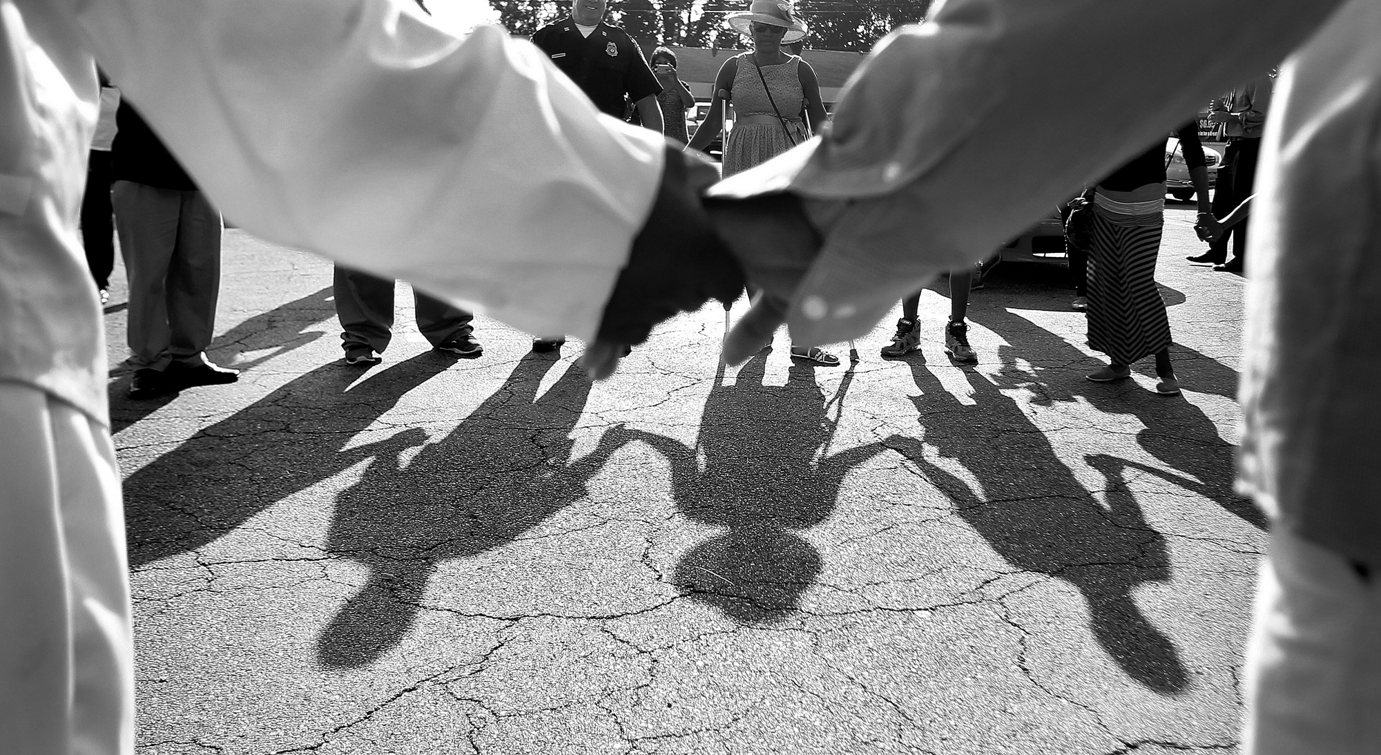 –Lifestyle HM: Rob Ostermaier/Daily Press–A group of about forty members of the community pray before a short protest march up Jefferson Ave. to Newport News police headquarters Wednesday as they try to draw attention to the situation in Ferguson, Missouri and the shooting of Michael Brown.