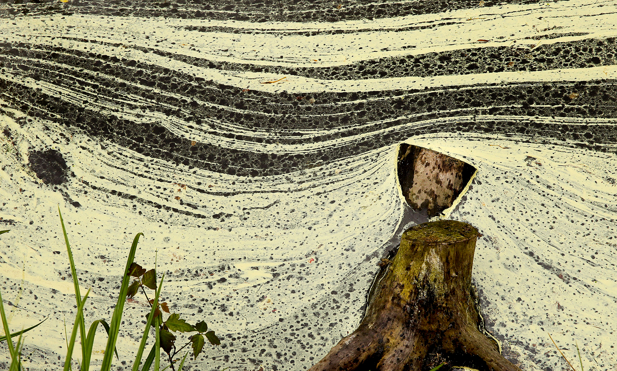 Pictorial 3rd Place: Rob Ostermaier/Daily Press Published June 1, 2015 at 2000 × 1203 in The 2014 VNPA Photo Contest Winners Gallery: Singles –Pictorial 3rd Place: Rob Ostermaier/Daily Press–Spring pollen washed away by heavy rain flows into Lake Maury near the Mariners Museum. Every spring the vehicles, houses and streets are covered with the fine yellow powder.
