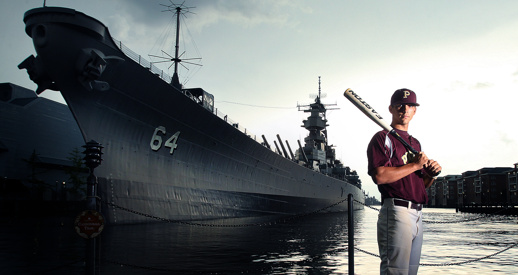 Athletes Of The Year Published June 1, 2015 at 2000 × 1063 in THE 2014 VNPA PHOTO CONTEST WINNERS GALLERY: Sports Picture Story Chase Pinder of Poquoson High is the baseball player of the year. Pinder is in front of the USS Wisconsin. The Wisconsin first saw action in the Pacific in 1944 and served her final combat mission during Desert Storm.