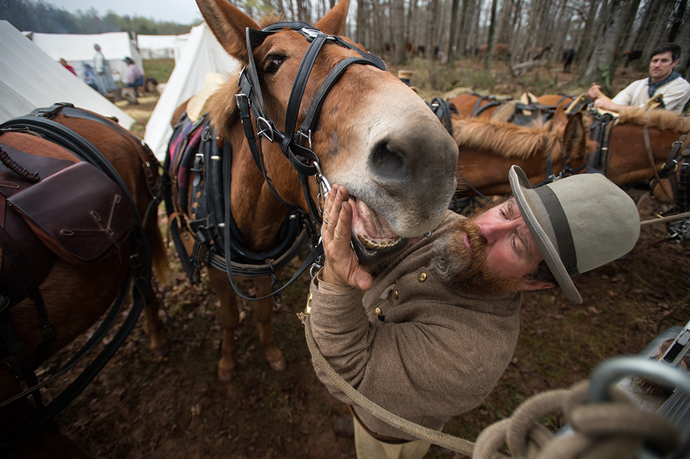 Feature 3rd Place: Autumn Parry/The News & Advance Published August 31, 2015 at 1000 × 666 in VNPA 2nd Q. Clip Contest Mark Stark tends to his horse as he prepares them to haul canons down to the battlefield for a demonstration during the sesquicentennial at the Appomattox Court House National Historical Park in Appomattox, Va. on April 10, 2015.