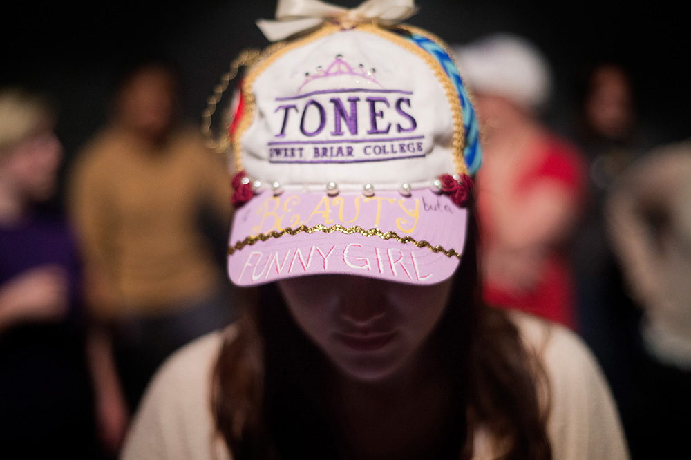 Claire Hamrick goes over her solo during a practice with the Sweet Tones, an a cappella group on campus that also is a tap club. Unlike the other tap clubs, the girls can audition to become members instead of being selected. Members of the taps clubs are known by their decorated hats made by their “mom,” an upperclasswoman, which they receive upon becoming a member of the group.