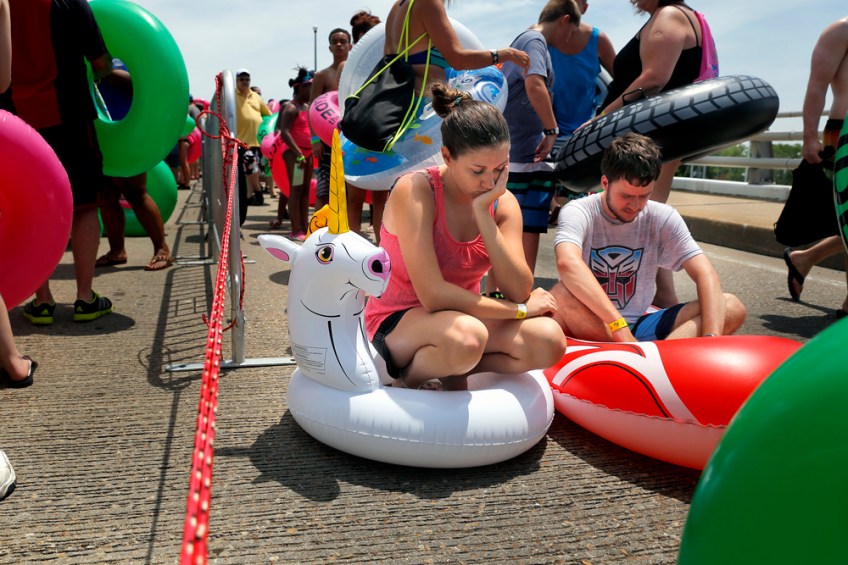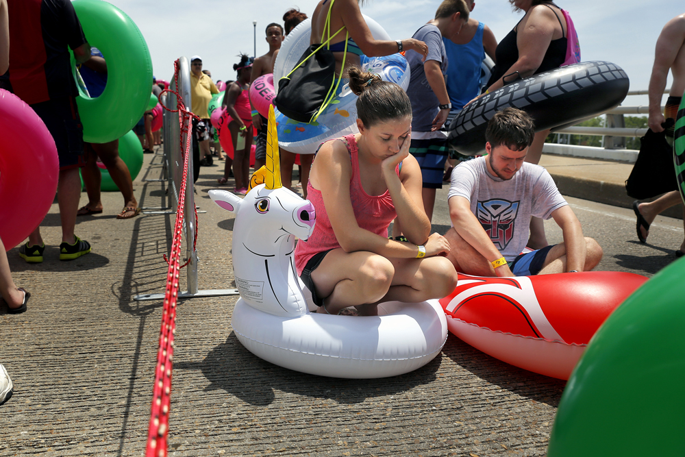 Feature 2nd Place: Jonathon Gruenke/Daily Press Published August 31, 2015 at 1000 × 667 in VNPA 2nd Q. Clip Contest Angela Jeffries, center, and William Anderson, right, sit in disappointment while waiting in line for Saturday’s Slide the City event in Hampton. Jeffries stated she had been waiting in line for over two hours.