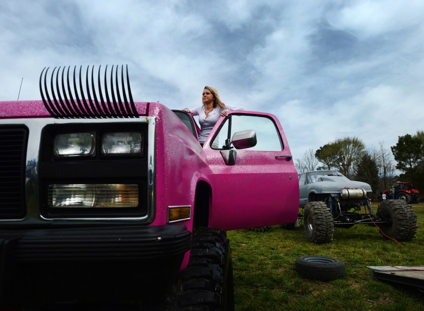 3rd PLACE FEATURE PICTURE STORY: Jay Diem, Easter Shore News—Baylee Hart steps up in her truck, which has matching eyelashes, to look over the mud hop course before the start of the Muddin’ at the Moose event on Saturday, April 11, 2015. Hart would race in one run at the event before switching gears to attend her senior prom that night at nearby Broadwater Academy.