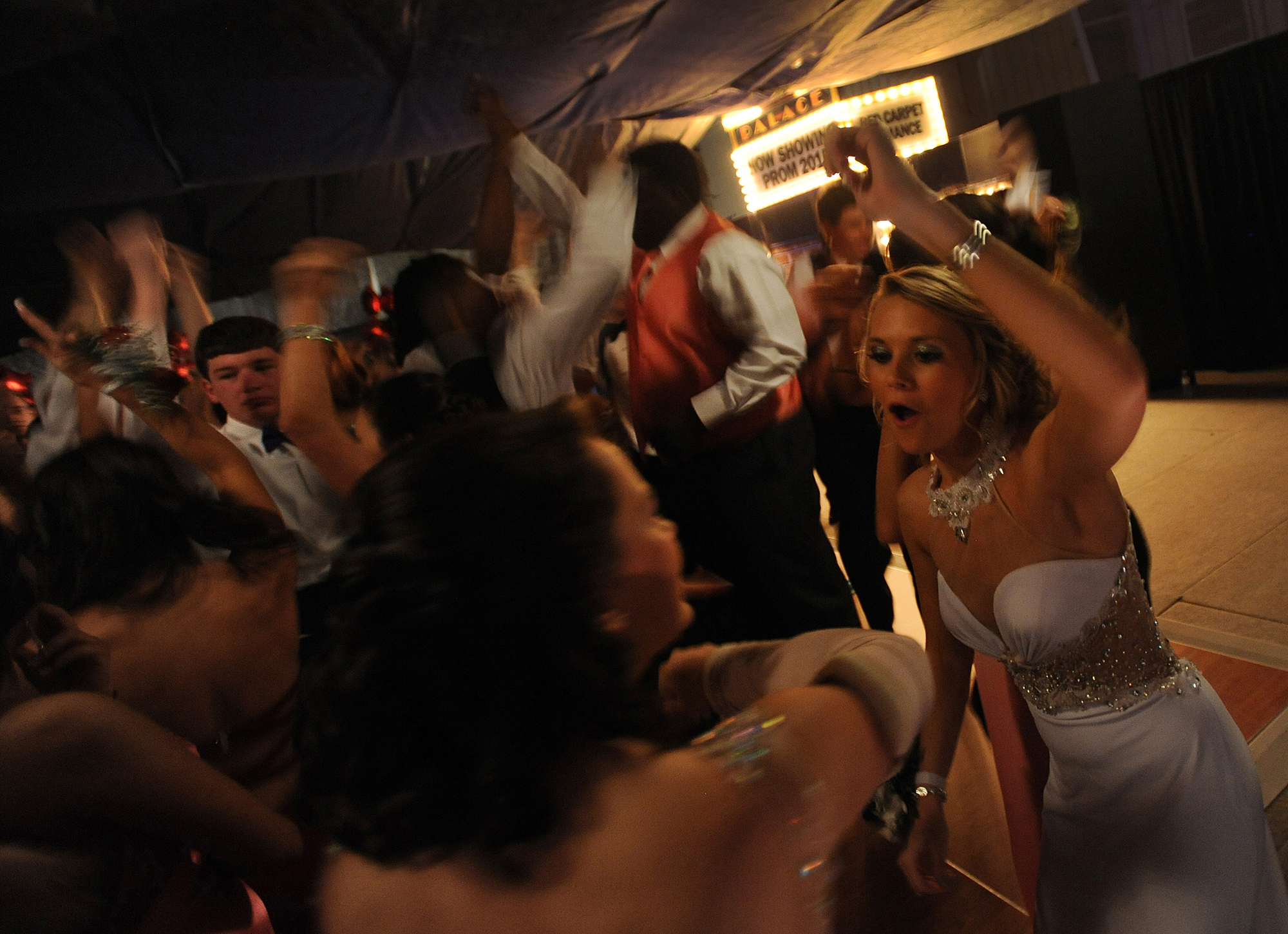 fps-009-PitToProm-13 Published March 6, 2016 at 2000 × 1450 in 2015 VNPA Contest: Feature Picture Story Baylee Hart (right) dances with her friends during the Broadwater Academy senior prom. Earlier in the day Hart competed in the local Muddin’ at the Moose mud hop.