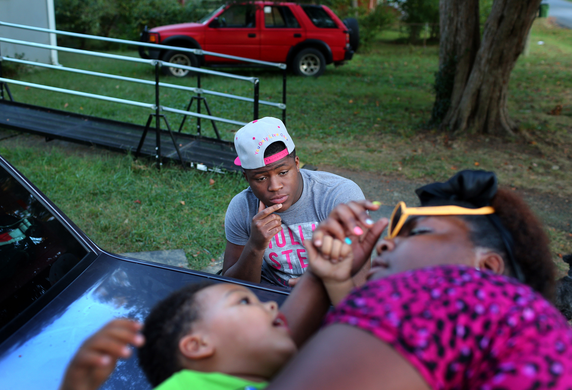 2nd PLACE FEATURE PICTURE STORY: Daniel Min, Times-Dispatch—Edward Miller looks on his sister, Shakiria Miller, and cousin, David Grady, 3 (back in 2013), at his home. Edward was shot five times by another 16-year-old, with unknown reason, while walking home with his sister, Shakiria Miller, from a birthday party on March 2, 2013. “First time, I got a little shook-up. Second time, I hit the ground. Out of breath, pleading for my life,” Edward said of the shooting.