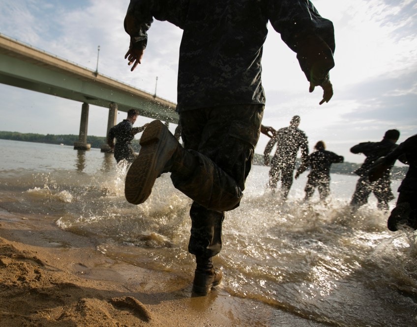 3rd PLACE NEWS PICTURE STORY: Mike Morones, Military Times—Plebes run to the Severn River to wash off during the annual Sea Trials exercise at the U.S. Naval Academy in Annapolis, Md., on Tuesday, May 12, 2015. The event, modeled after the Marine Corps’ Crucible and Navy’s Battle Stations events, runs over 14 hours and tests the plebes’ physical and mental endurance.