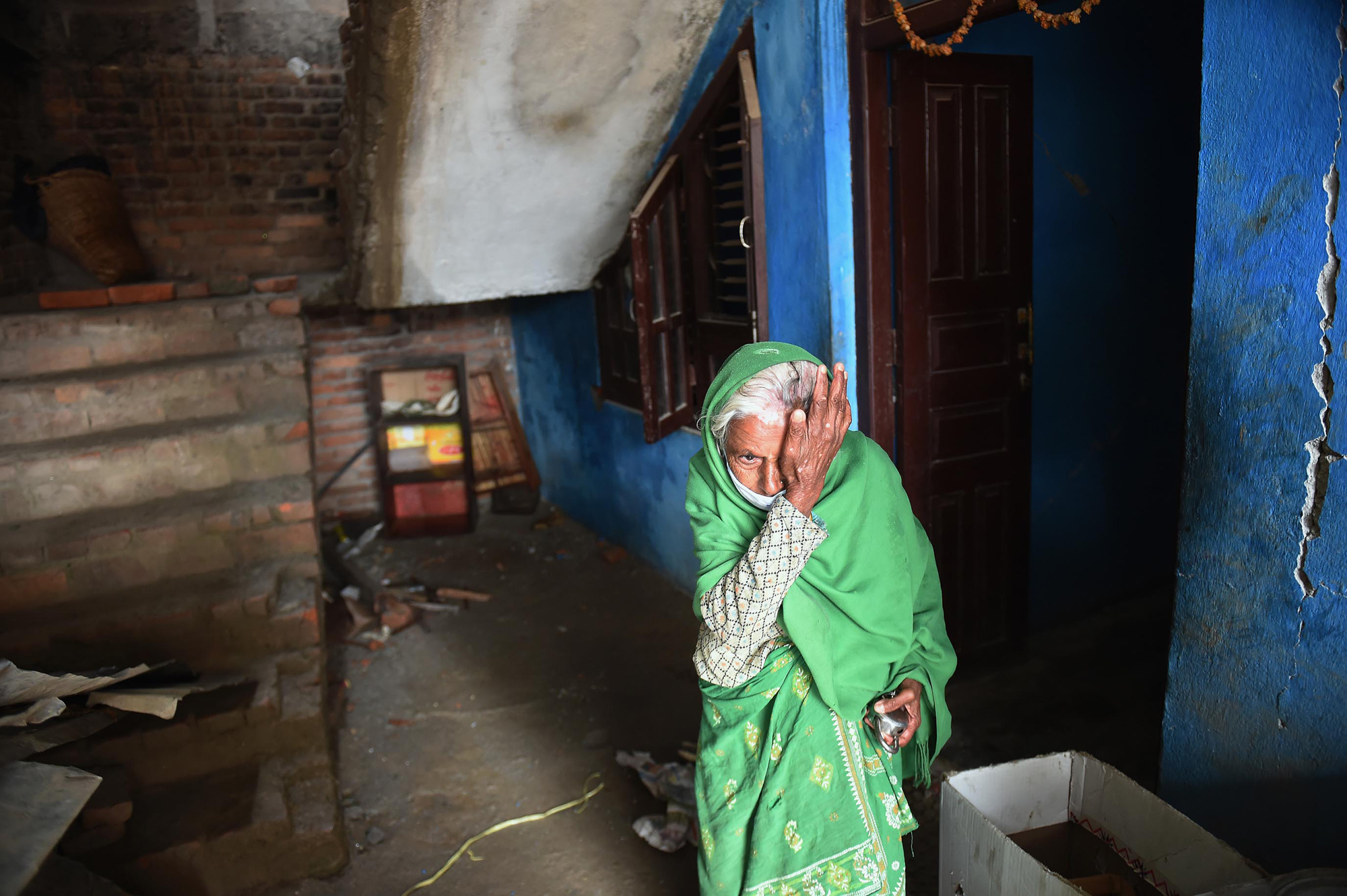 nps-020-earthquake05 Published March 6, 2016 at 2000 × 1331 in 2015 VNPA Contest: News Picture Story Sabitri Nepan wipes away tears as she stands near her earthquake damaged home on Thursday April 30, 2015 in Kathmandu, Nepal.