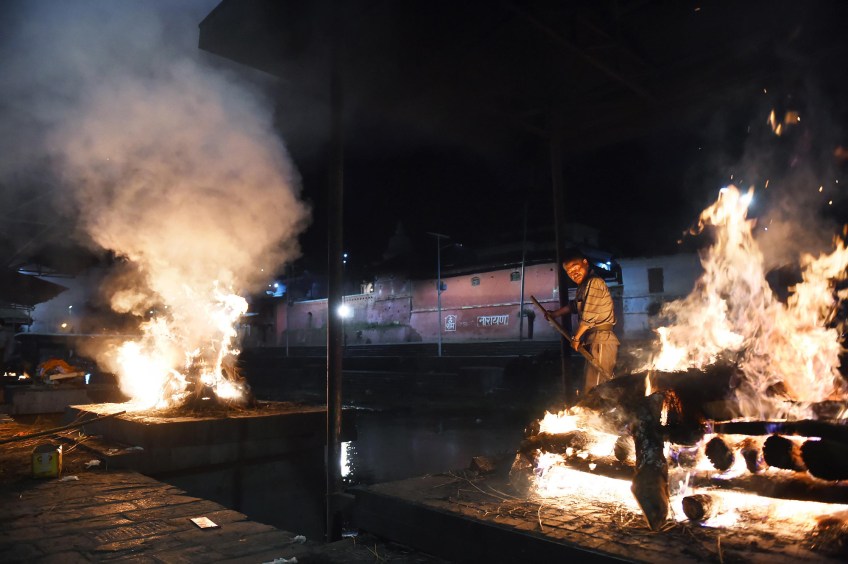 nps-020-earthquake06 Published March 6, 2016 at 2000 × 1331 in 2015 VNPA Contest: News Picture Story A man monitors an earthquake victim’s funeral pyre at Pashupatinath Temple on Wednesday April 29, 2015 in Kathmandu, Nepal. A deadly earthquake there has killed thousands.