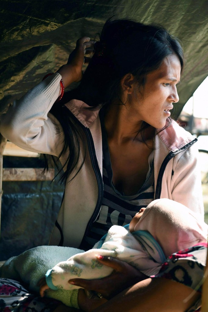 nps-020-earthquake09 Published March 6, 2016 at 1332 × 2000 in 2015 VNPA Contest: News Picture Story Widowed and displaced by the earthquake, Minu Nepali, 23, holds her unnamed youngest son as she now lives in a tent encampment on Tuesday May 05, 2015 in Kathmandu, Nepal. Her husband was killed in the earthquake.