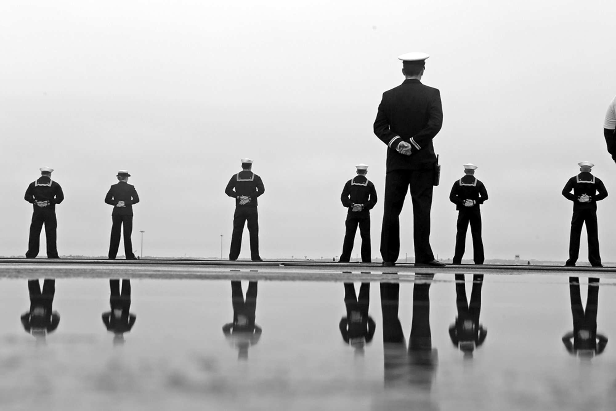 nps-022-ComingHome-07 Published March 6, 2016 at 2000 × 1334 in 2015 VNPA Contest: News Picture Story Sailors stand on the flight deck of the USS George Washington as the aircraft carrier begins to arrive at Naval Station Norfolk Thursday morning December 17, 2015.