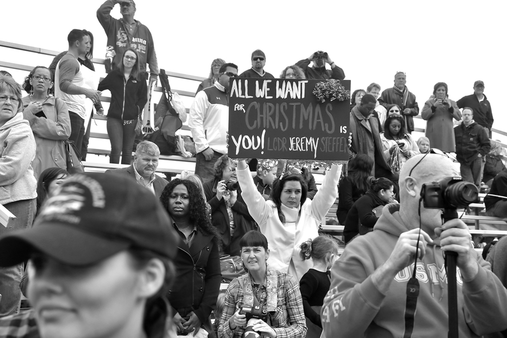 nps-022-ComingHome-09 Published March 6, 2016 at 2000 × 1334 in 2015 VNPA Contest: News Picture Story Family members wait as sailors begin to leave the USS George Washington after the aircraft carrier arrived at Naval Station Norfolk Thursday morning December 17, 2015.