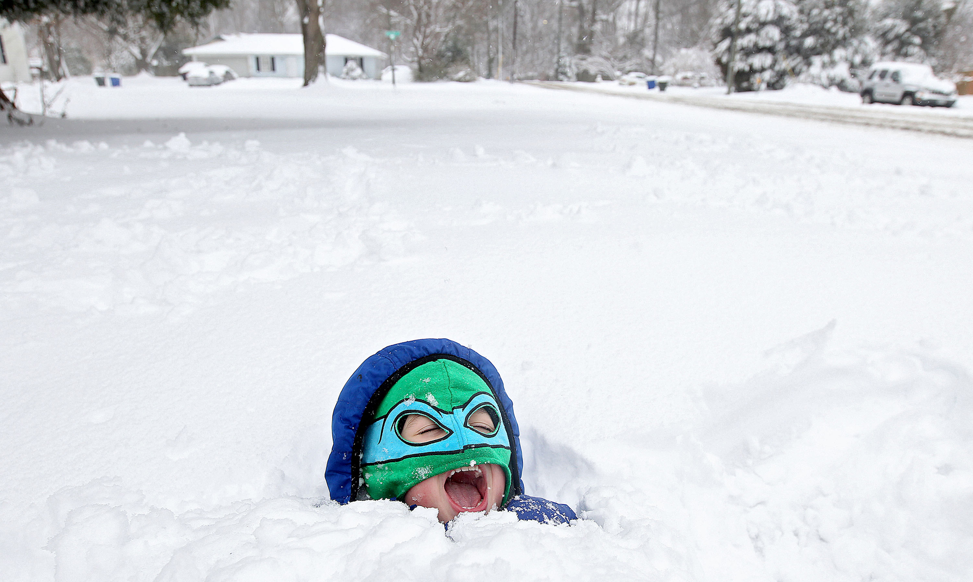 Feb 26th Snow Published March 6, 2016 at 2000 × 1196 in The VNPA 2015 Contest Winning Singles 2nd PLACE FEATURE: Rob Ostermaier, Daily Press–Dolton McCurry in his Leonardo Teenage Mutant Ninja Turtles hoodie plays in the snow in front of his home on in Newport News. This is the second unusually large snowstorm to hit the area this winter.