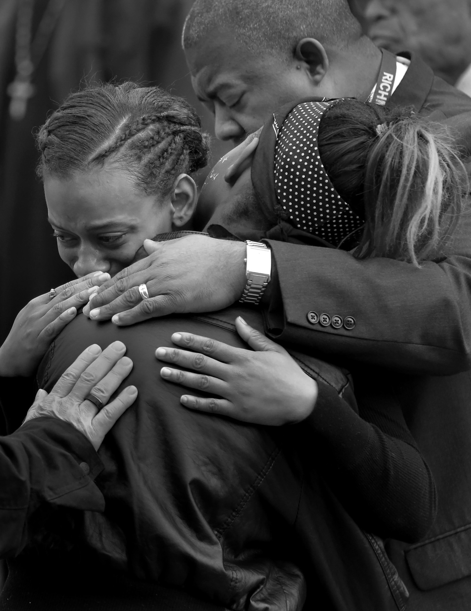 gennews_03 Published March 6, 2016 at 1540 × 2000 in The VNPA 2015 Contest Winning Singles 3rd PLACE GENERAL NEWS: Daniel Min, Times-Dispatch—Shaqwanna Boisseau, facing, comforts her cousin, Kalesha Jones, 11, best friend of Amiya Moses, during a vigil. Amiya, the 12-year-old, was killed at her friend’s apartment.