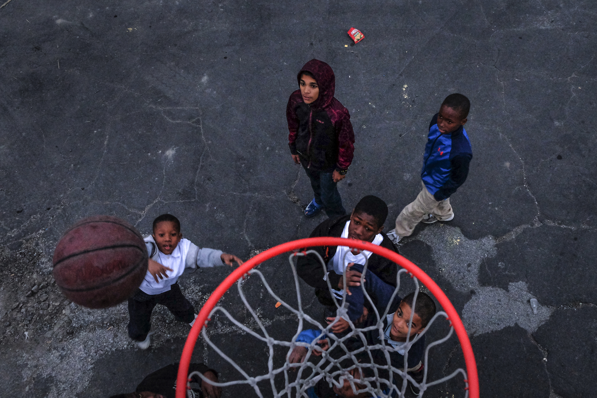3rd PLACE SPORTS ACTION: Jahi Chikwendiu, Washington Post—Youngsters hoop on a portable basketball goal brought through their West Baltimore neighborhood by the city’s parks and recreation division on November 17, 2015, in Baltimore, Maryland. The goals are regularly rotated around the city in an effort to divert kids from the negatives of the streets.