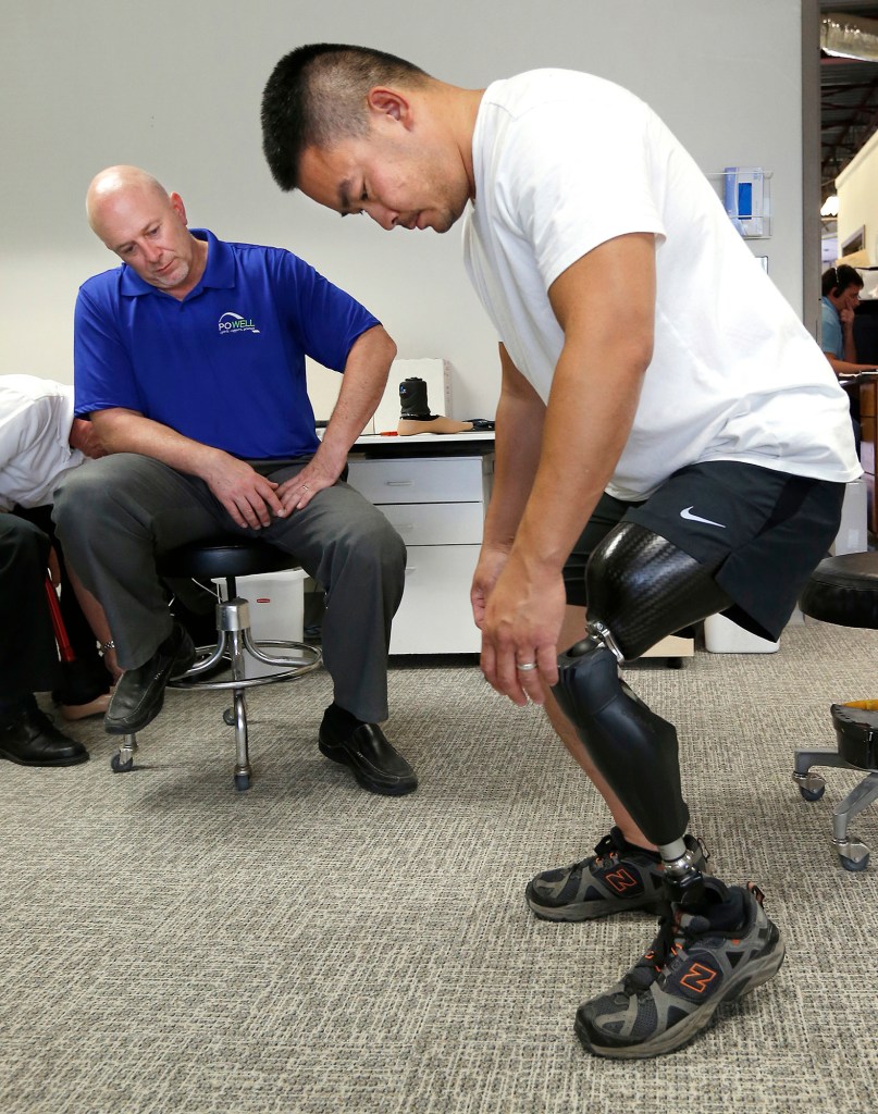Sps-010-coachprosthetist-03 Published March 6, 2016 at 1576 × 2000 in VNPA 2015 Contest: Sports Picture Story Prosthetist Joe Sullivan watches as Keith Chantree tries out a Triton smart ankle at Powell Orthotics and Prosthetics.
