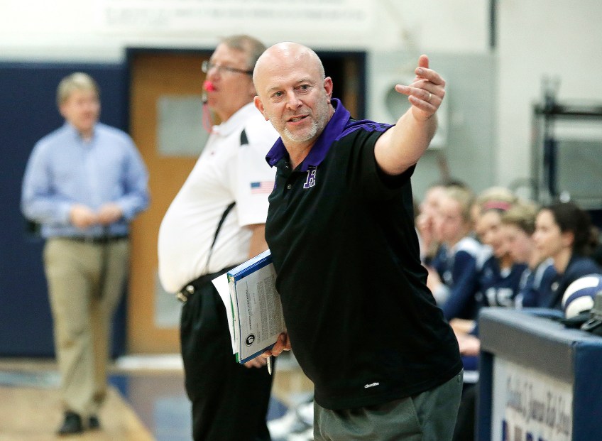 sps-010-coachprosthetist-10 Published March 6, 2016 at 2000 × 1466 in VNPA 2015 Contest: Sports Picture Story James River Head Coach Joe Sullivan calls out to a player on the bench during their game with Douglas Freeman.