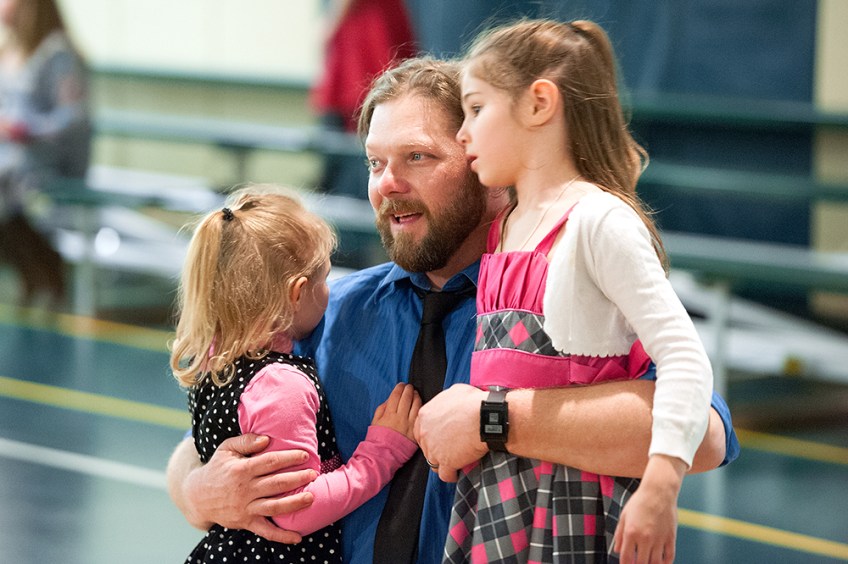 Multiple 3rd place, Nikki Fox, Daily News-Record 07 Published May 4, 2016 at 1000 × 666 in 1St Q. CLIP CONTEST WINNERS 2016 Eric Comer, of Rockingham County, gets teary-eyed as he slow dances with his daughters, Stella (left), 4, and Maggie, 6, during the last songs played for the evening.