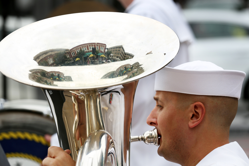 Feature, 3rd place, Stephanie Klein-Davis, The Roanoke Times Published August 24, 2016 at 1000 × 667 in 2nd Q. CLIP CONTEST WINNERS 2016 Jonathan Elcewicz from Auburn, Maine, plays the tuba with the Navy Fleet forces Band on the Roanoke City Market during Navy Week in the Roanoke/Lynchburg metro areas.