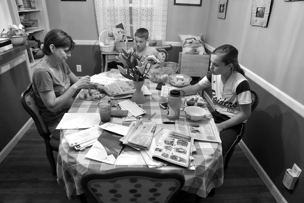 Multiple, 1st place, Jonathon Gruenke, The Daily Press (8) Published August 24, 2016 at 1000 × 667 in 2nd Q. CLIP CONTEST WINNERS 2016 Karen Garner eats dinner with Bradley and Frankie Tuesday evening April 26, 2016. Jim Garner died from Alzheimer’s April 2, 2016.