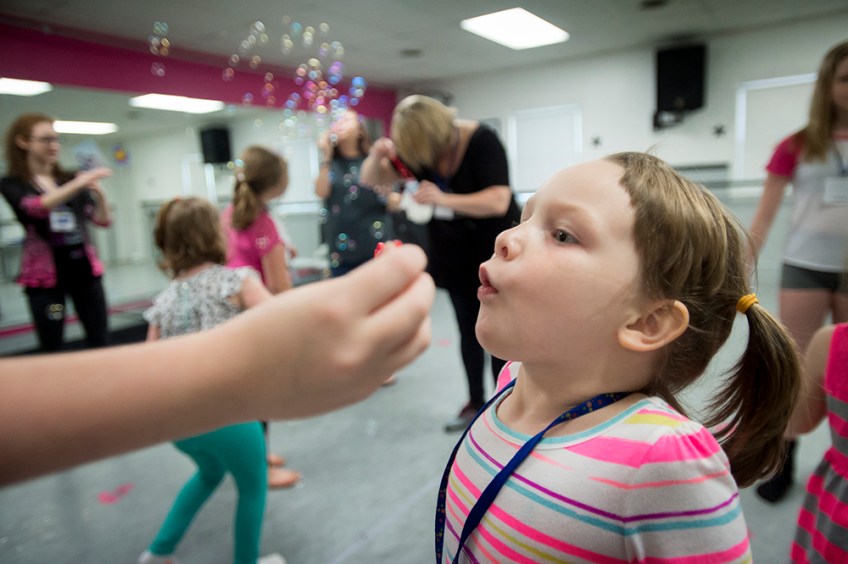 Multiple, 2nd place, Jill Nance, The News & Advance (10) Published August 24, 2016 at 1000 × 666 in 2nd Q. CLIP CONTEST WINNERS 2016 Emily Woodall blows bubbles at the end of camp on Wednesday. Woodall, who suffers from a brain tumor, prefers to keep a mask on her mouth and nose but the play time with bubble moved her to be comfortable enough to take it off.