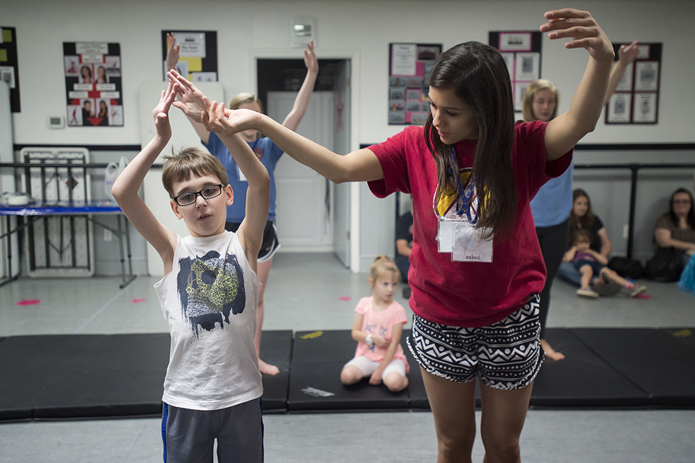 Multiple, 2nd place, Jill Nance, The News & Advance (6) Published August 24, 2016 at 1000 × 667 in 2nd Q. CLIP CONTEST WINNERS 2016 Volunteer Ally Nigro helps Jordan East perform a dance move during Superhero Dance Camp.