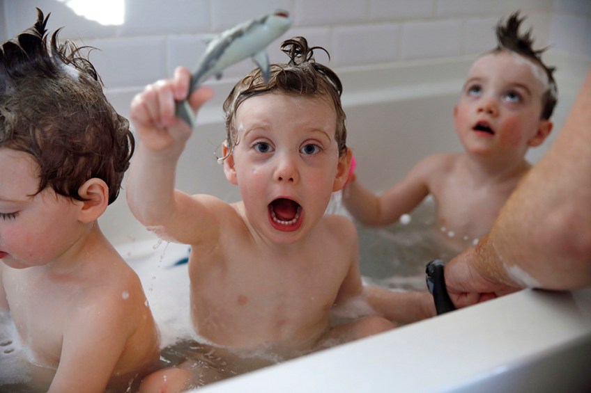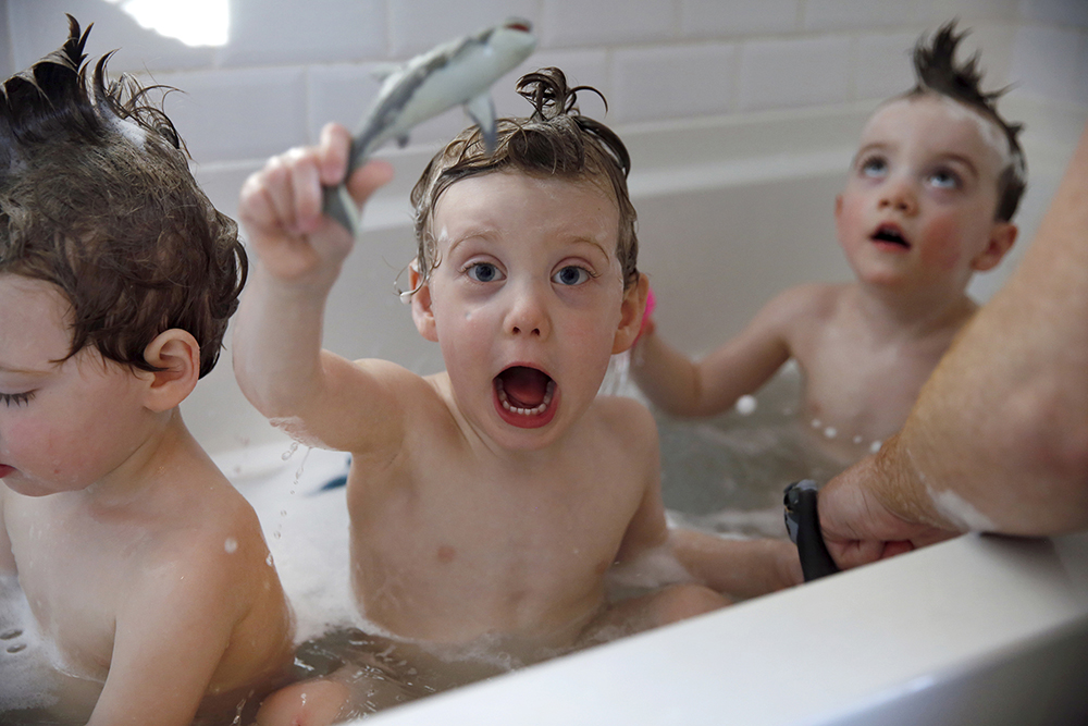 Multiple, HM, Shelby Lum, The Richmond Times-Dispatch (10) Published August 24, 2016 at 1000 × 667 in 2nd Q. CLIP CONTEST WINNERS 2016 (From left) Brandon, James and Finnegan Brehony are soaped up during bath time on Sunday April 17, 2016. The boys are triplets to first time parents Kate Bredimus and Matt Brehony.