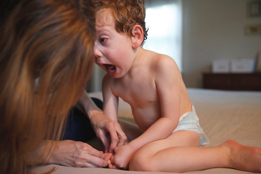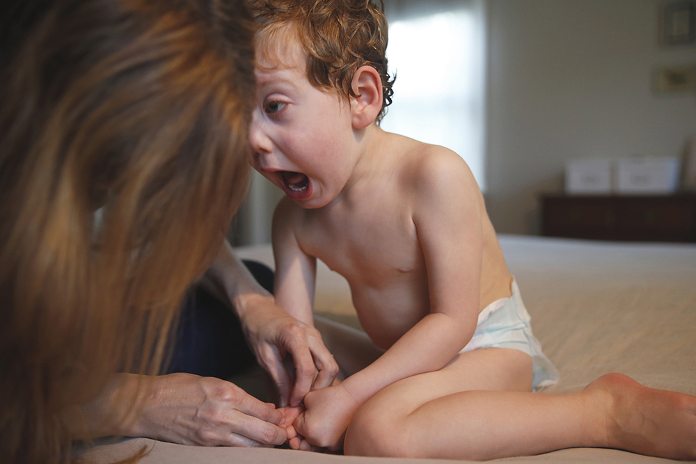 Multiple, HM, Shelby Lum, The Richmond Times-Dispatch (11) Published August 24, 2016 at 1000 × 667 in 2nd Q. CLIP CONTEST WINNERS 2016 James Brehony screams out in pain while Kate Bredimus extracts a splinter from his toe on Sunday April 17, 2016. James is a triplet and the boys are the first kids for parents Kate Bredimus and Matt Brehony.