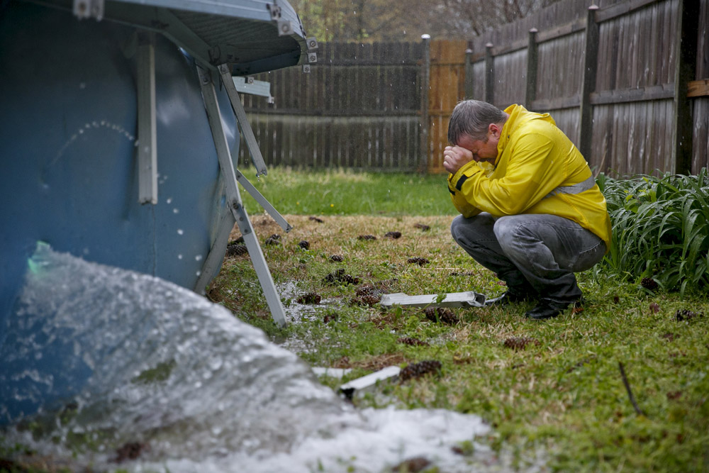 “This devastates the hell outta me,” said Kevin Dillard while draining a pool that was the location of the drowning of his toddler neighbor in Virginia Beach, Va., on Saturday, April 2 , 2016. On Friday, April 1, 2016, a toddler was reported missing on the 1800 block of Old Ridge Road in Virginia Beach, Va., shorty after, she was found in the pool in Dillard’s backyard. ÒThey have to look at that pool every day,Ó he said. ÒIÕm not doing that to them. IÕm not doing that to me.Ó