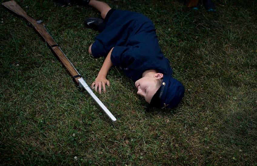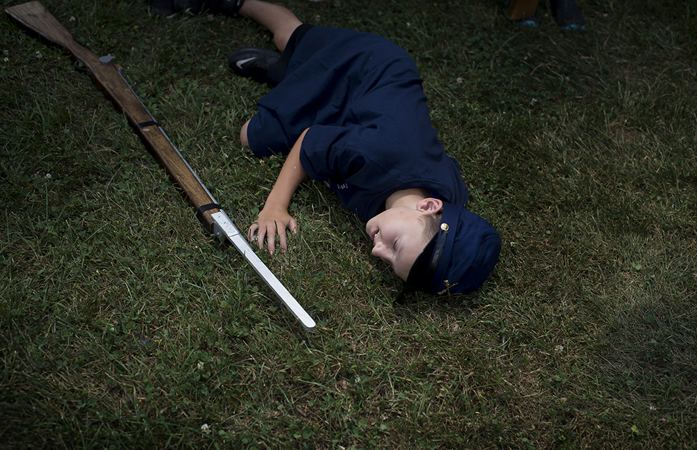 feature-2nd-place-jill-nace-news-advance Published December 7, 2016 at 1000 × 647 in 3rd Q. CLIP CONTEST WINNERS 2016 Ryland Carter acts like he has been shot during a mock battle during Civil War camp on Thursday.