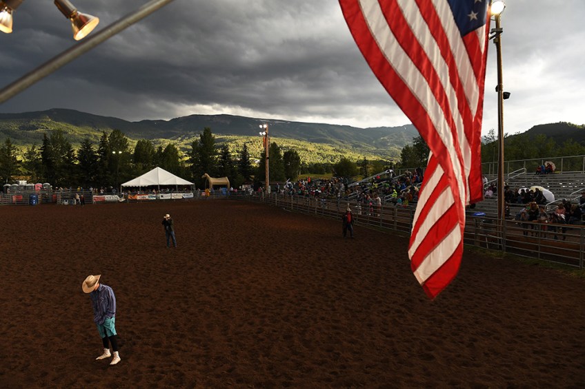 People gather under a threatening sky that produced showers during the Snowmass Rodeo on Wednesday July 19, 2017 in Snowmass Village, CO. This is the 44th year for the weekly rodeo that runs from mid-June through August.