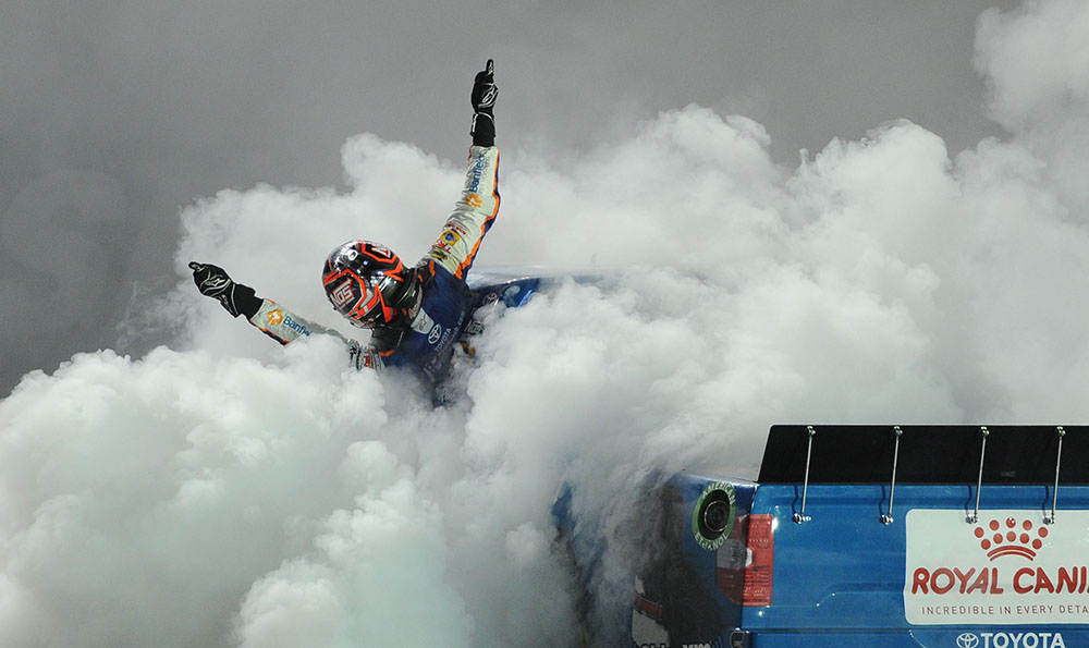 2017 Q3 Sports 1st Place Earl Neikirk Published December 26, 2017 at 1000 × 595 in 2017 Q3 Sports 1st Place Earl Neikirk UNOH 200 Truck Race Winner Kyle Busch hangs out of his truck while performing a burnout after finishing the Rain Delayed race on Wednesday, August 16, 2017 in Bristol, Tennessee.