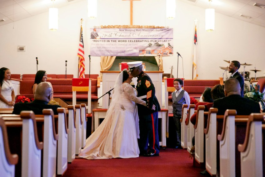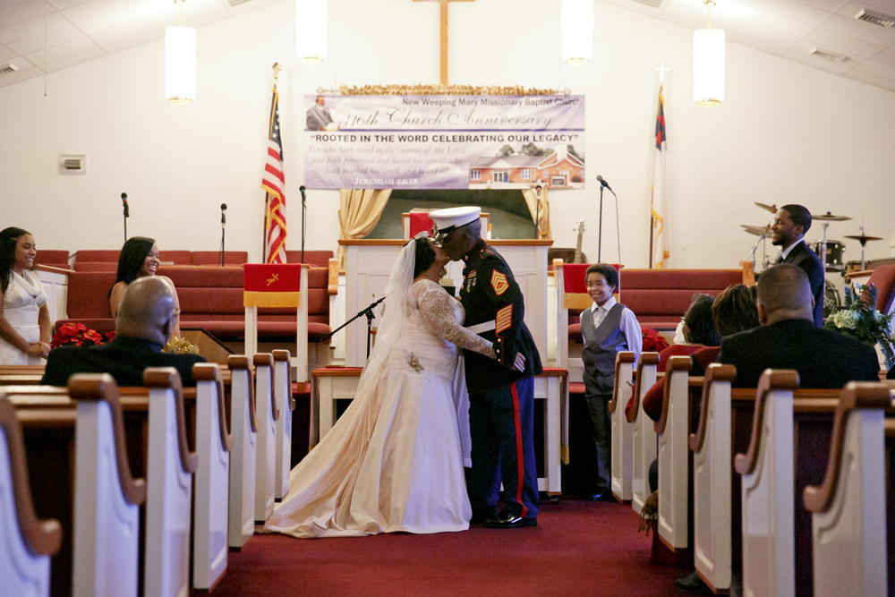 Elizabeth and Arthur Lawrence Sr., share a kiss at the end of their wedding at New Weeping Mary Missionary Baptist Church in Chesapeake, Va., on Saturday, December 10, 2016. The couple has been married for 50 years but due to LawrenceÕs military career, they were unable to have a planned wedding and married in a quick ceremony in 1966.