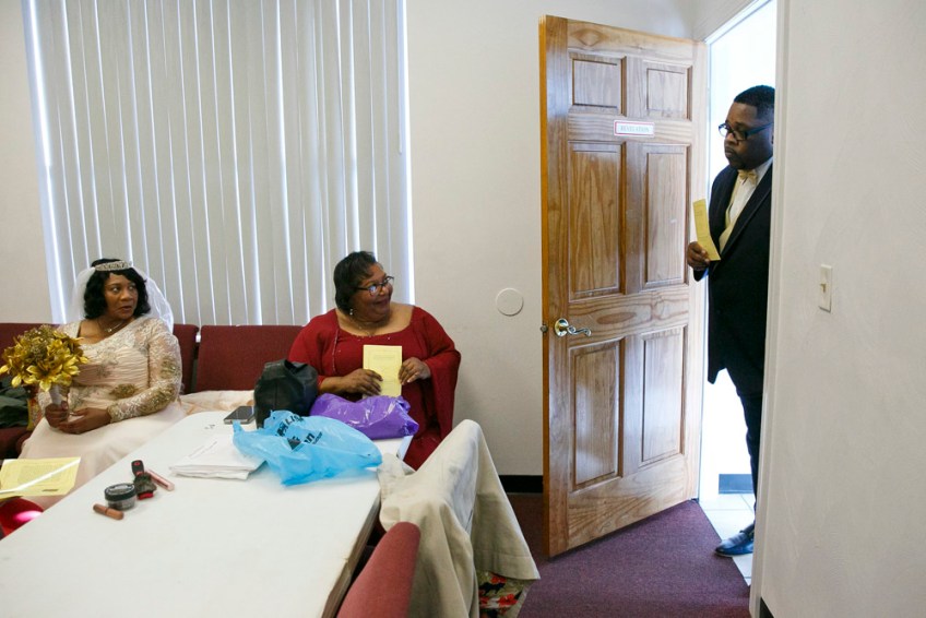 multiple-3rd-place-kristen-zeis-the-virginian-pilot-3 Published February 8, 2017 at 1000 × 668 in 4th Q. CLIP CONTEST WINNERS 2016 Arthur Lawrence Jr., far right, checks on his mother, Elizabeth, far left, and aunt, Eva Stallings, prior to the start of her wedding at New Weeping Mary Missionary Baptist Church in Chesapeake, Va., on Saturday, December 10, 2016.
