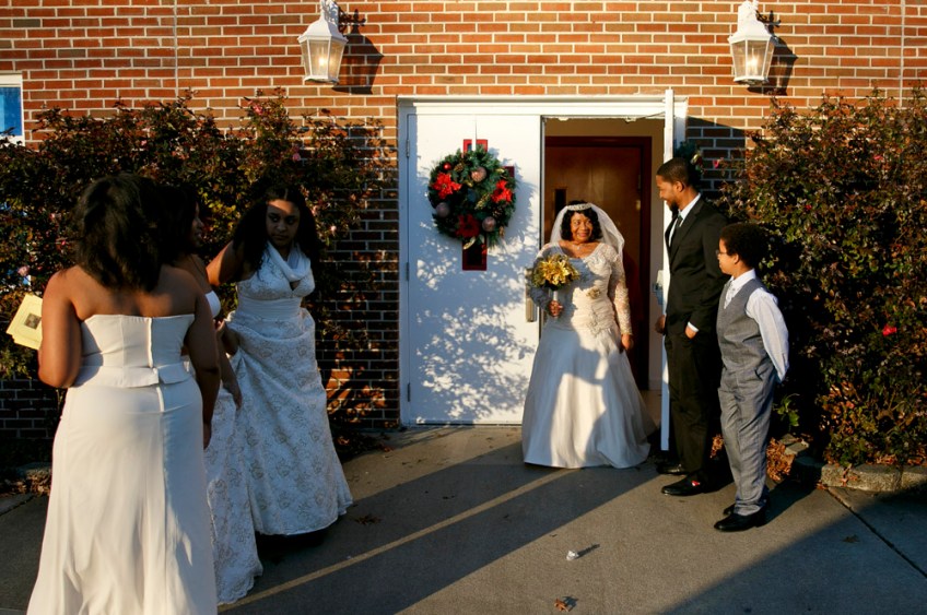 Elizabeth and Arthur Lawrence Sr., center, exit the church with their children and grandchildren following their wedding ceremony at New Weeping Mary Missionary Baptist Church in Chesapeake, Va., on Saturday, December 10, 2016 following their wedding. The couple has been married for 50 years but due to LawrenceÕs military career, they were unable to have a planned wedding and married in a quick ceremony in 19