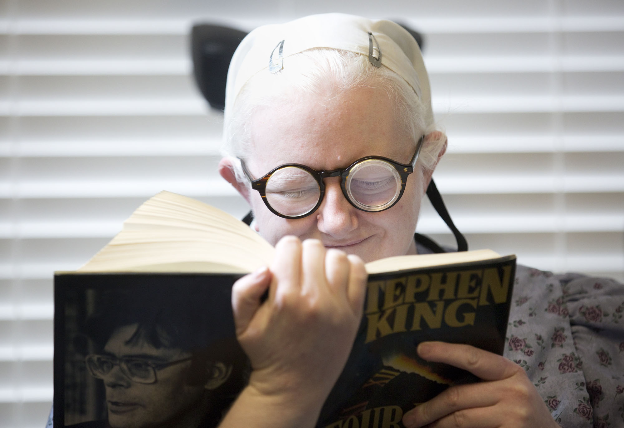 ey tonydavison 020216 p08 Published March 26, 2017 at 2000 × 1373 in 2016 Photos of the Year. Feature Picture Story… Tonya Davison, 36, has two sets of glasses – one for reading and one for distance. Here Tonya tests her new reading glasses by reading a book from her favorite author, Stephen King, comfortably at Dr. David Armstrong’s office in Roanoke.
